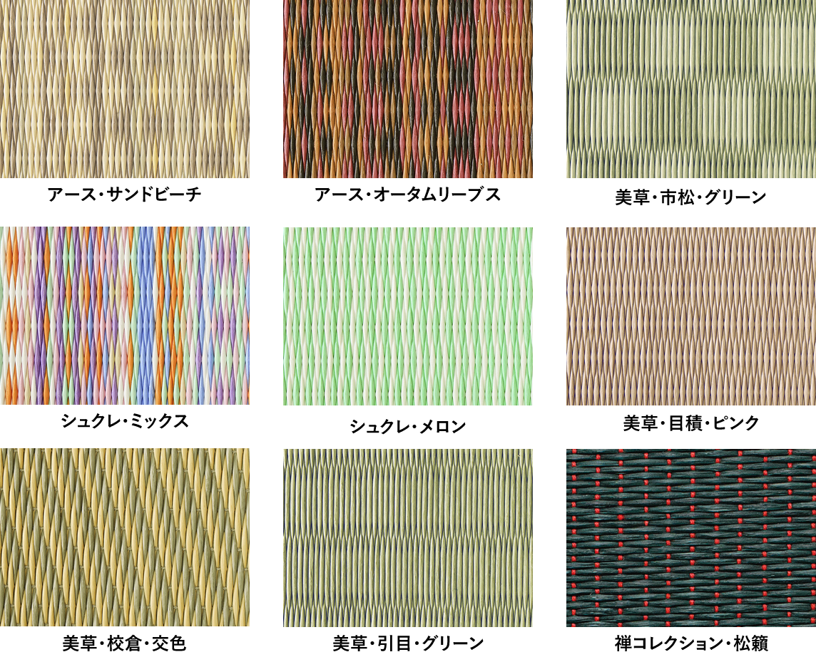 種類に分けて評価しておりますので、ご注文の際の目安としてご利用ください。この他にも多様な用途に合った畳がございます。個人様から法人様まで幅広く対応しており、店主が全国各地から厳選した「い草」の素材やデザインを持参しお伺いしますので何なりとご相談ください。